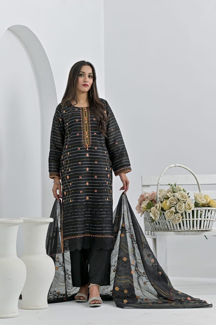 Featuring premium cotton fabric with intricate embroidery, perfect for a sophisticated and elegant look. Paired with a luxurious Nano Kara embroidered dupatta, this ensemble combines style and comfort for any occasion. Ideal for those who appreciate timeless design with a touch of modern flair.